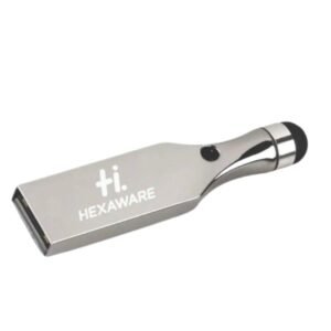 Uniquely shaped hexagonal metal USB drive that combines form and function.
