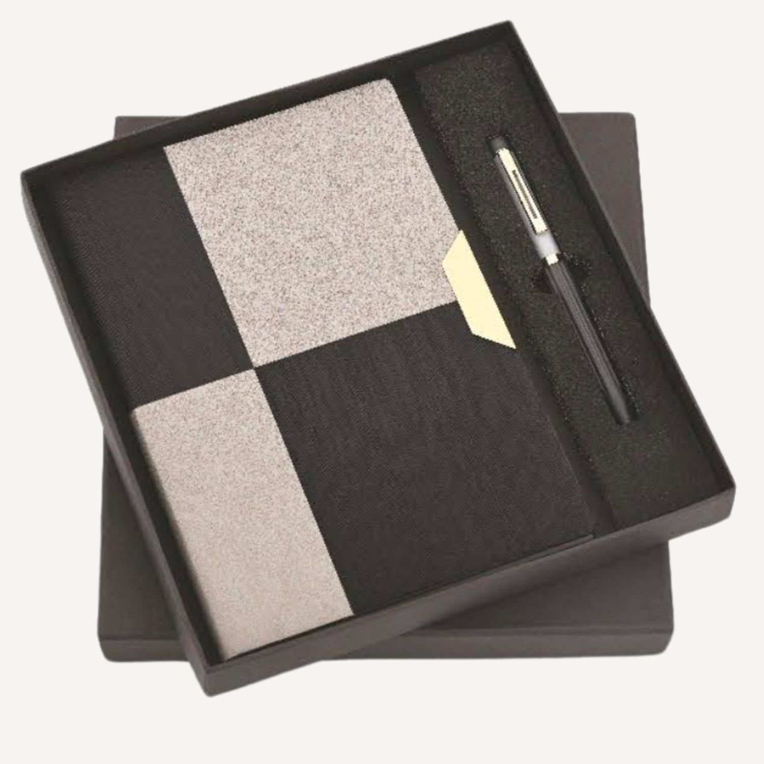 Black block textured diary and pen combo.