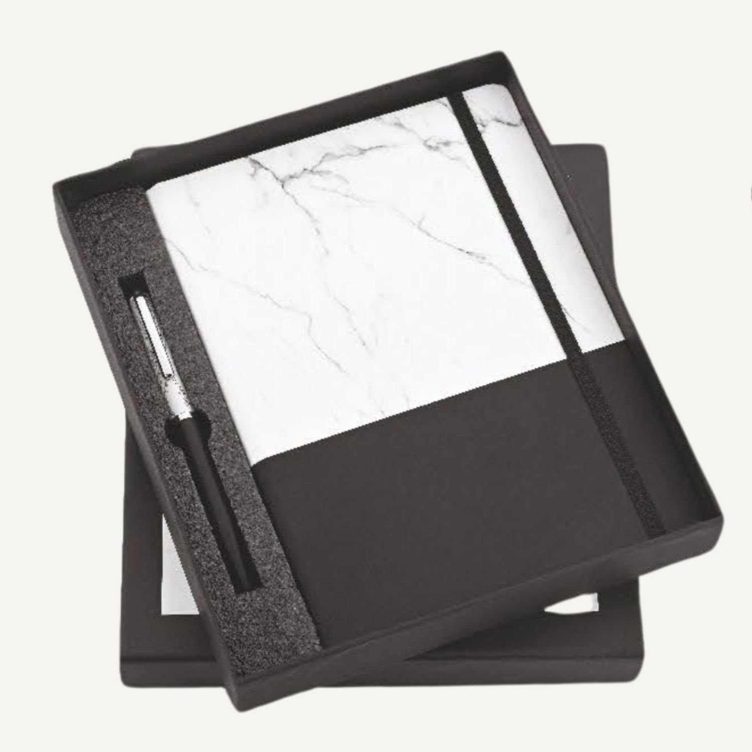 Marble texture A5 diary with metal pen for corporate gifting.