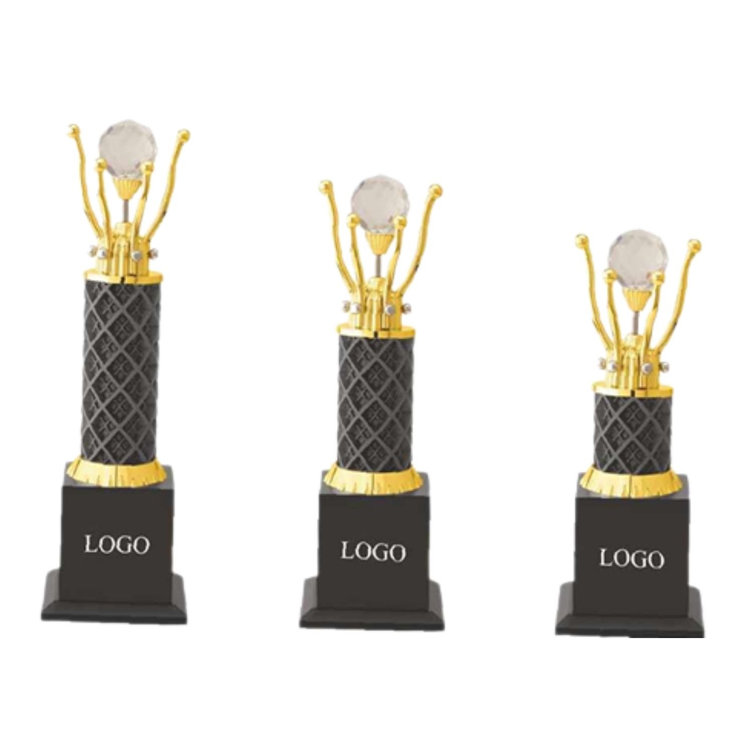 Traditional column-style trophies with premium finish.