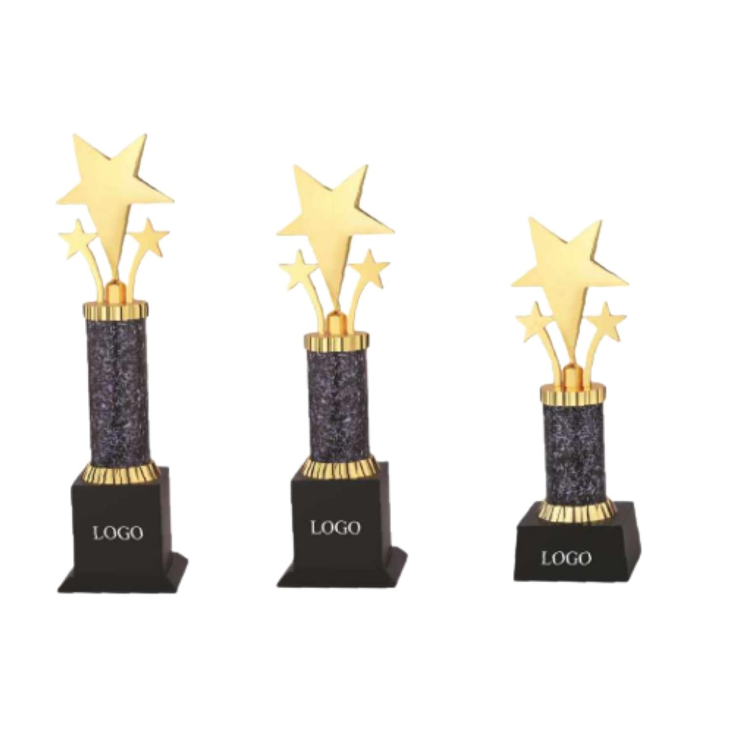Gold column star trophies.
