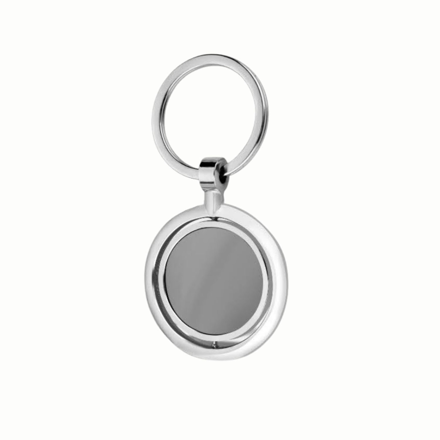 Premium circular keychain with chrome finish for executive gifts.