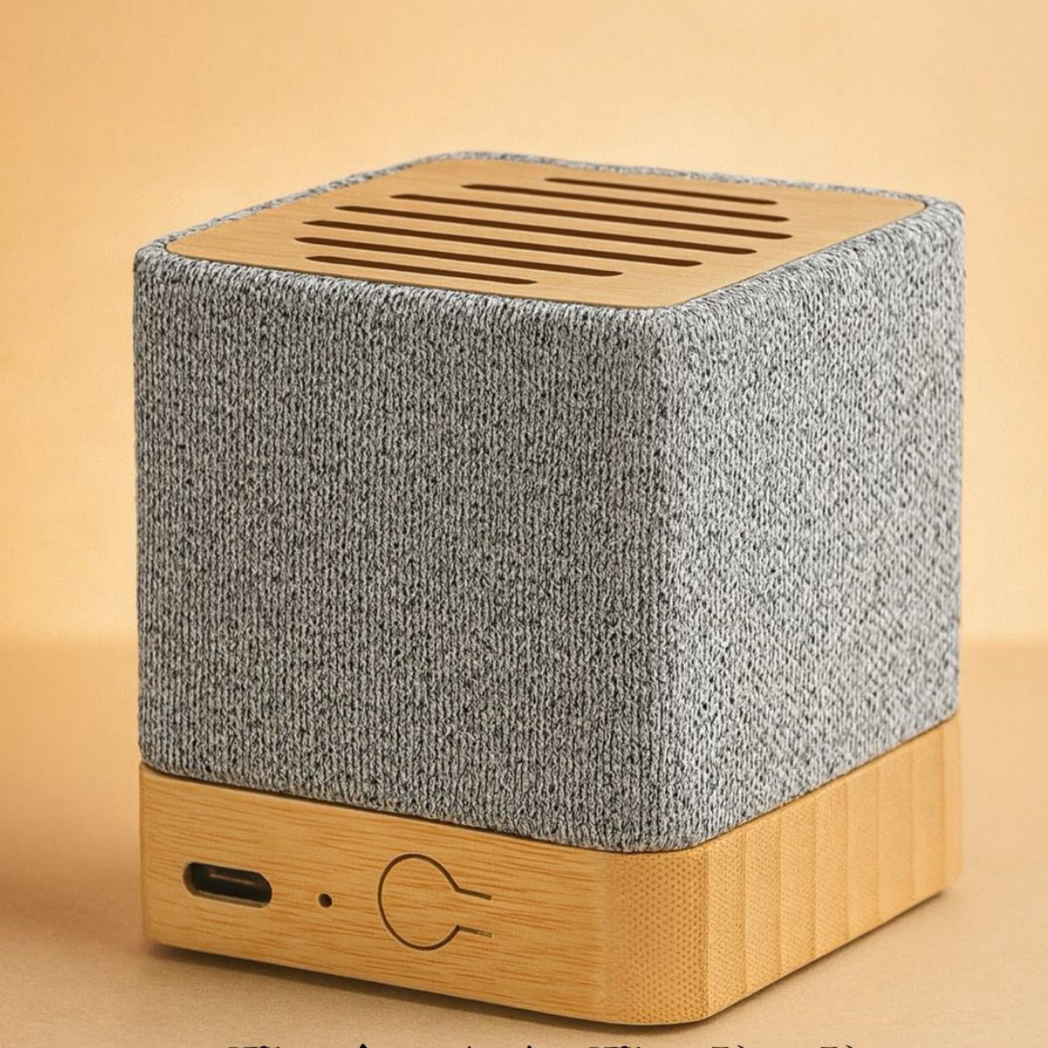 Premium bluetooth speaker with wooden base delivering clear sound.