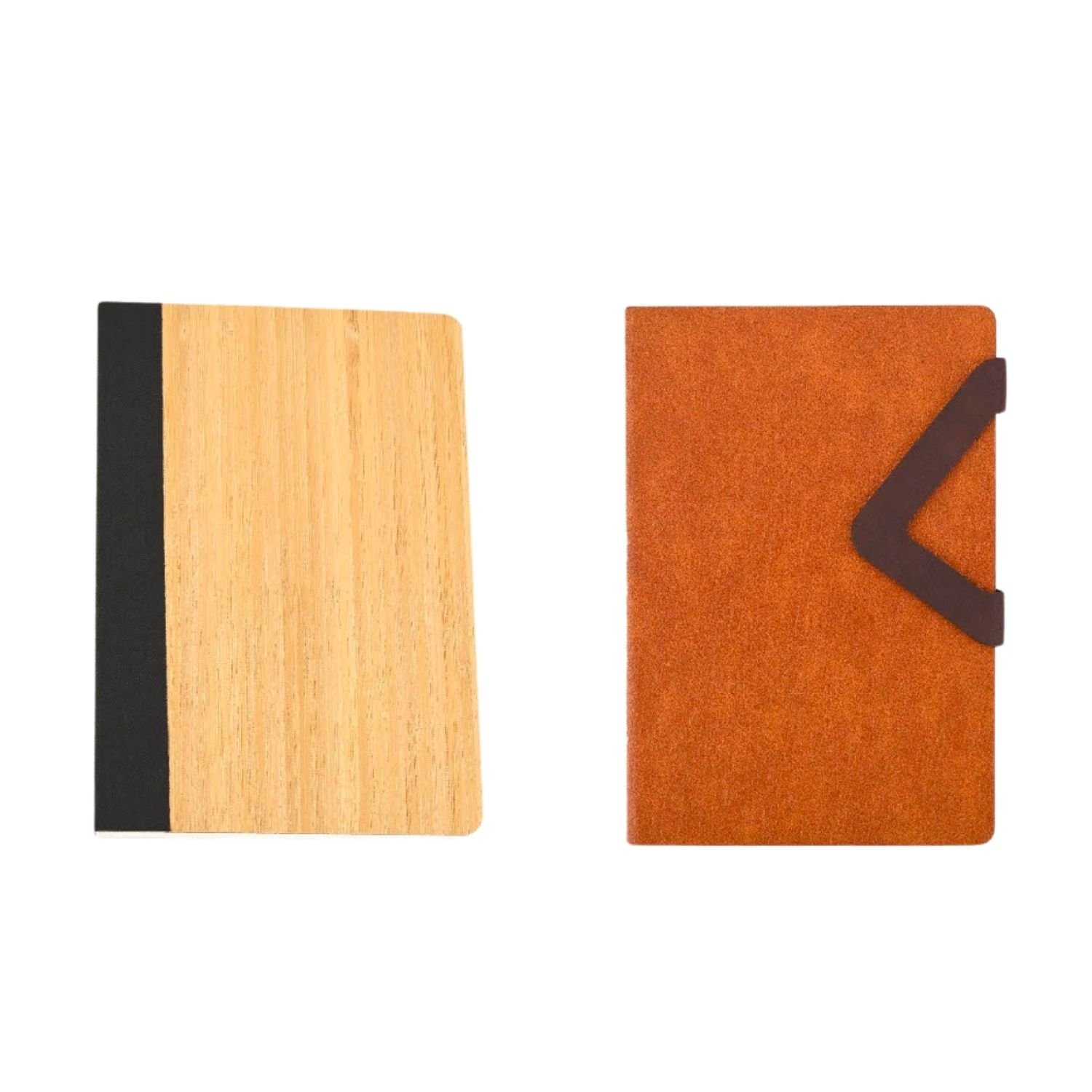 Distinctive notebook set featuring a realistic wood finish cover design.