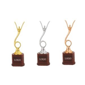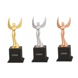 Winged design trophies for excellence and success awards.